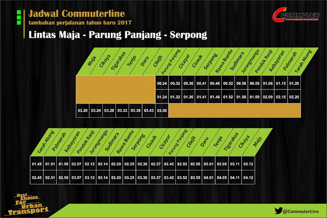 Untuk melihat gambar lebih jelas, anda bisa menge-klik gambar diatas. Jadwal tersebut hanya berlaku pada malam tahun baru 31 Desember 2016-01 Januari 2017. Untuk tarif mengikuti tarif parsial berdasarkan jarak yang ditempuh dari stasiun berangkat ke stasiun tujuan. Anda dapat melihat info resmi yang dirilis di Twitter PT. KCJ di